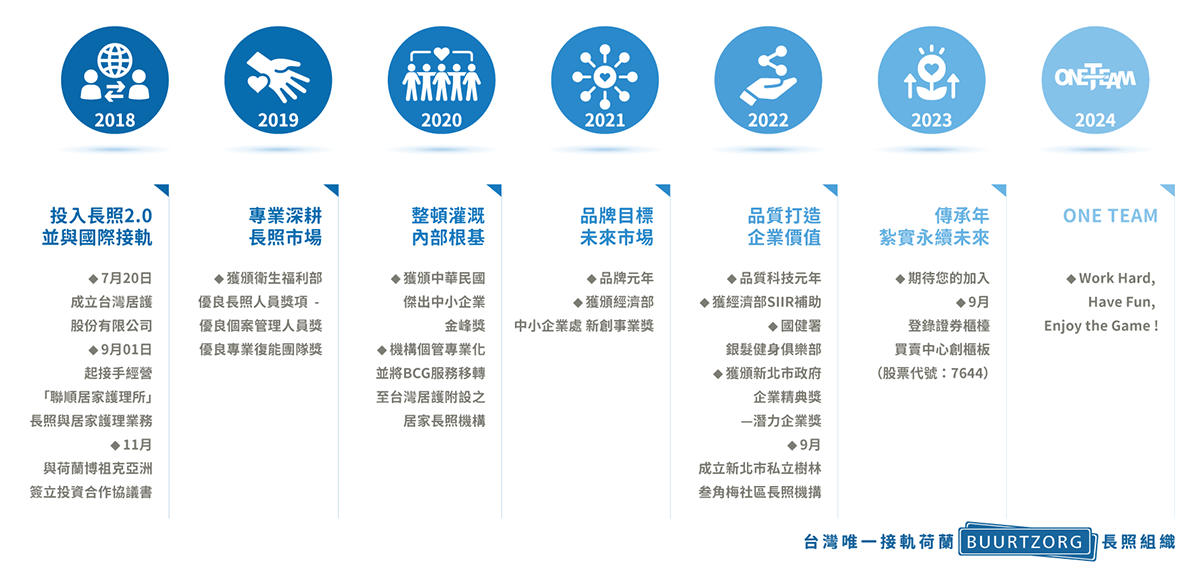 「台灣居護」於2018年由「聯順居家護理所」結合「荷蘭博祖克」共同創立,以「共好為本,實踐自我價值,共創自立與幸福」為核心精神,「鄰里照顧、在宅終老」為願景,提供「自立照顧、延緩失能」的整合性居家照顧服務。