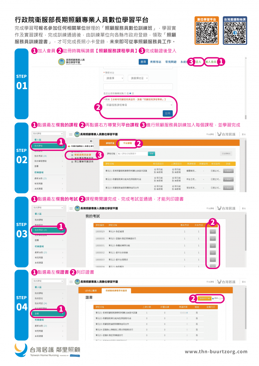 已完成衛生福利部長期照顧專業人員數位學習平台完成「照顧服務員課程」並通過測驗,並有6個月內的學習證明,且需通過本單位核心課程測驗達80分以上才能參加實習。