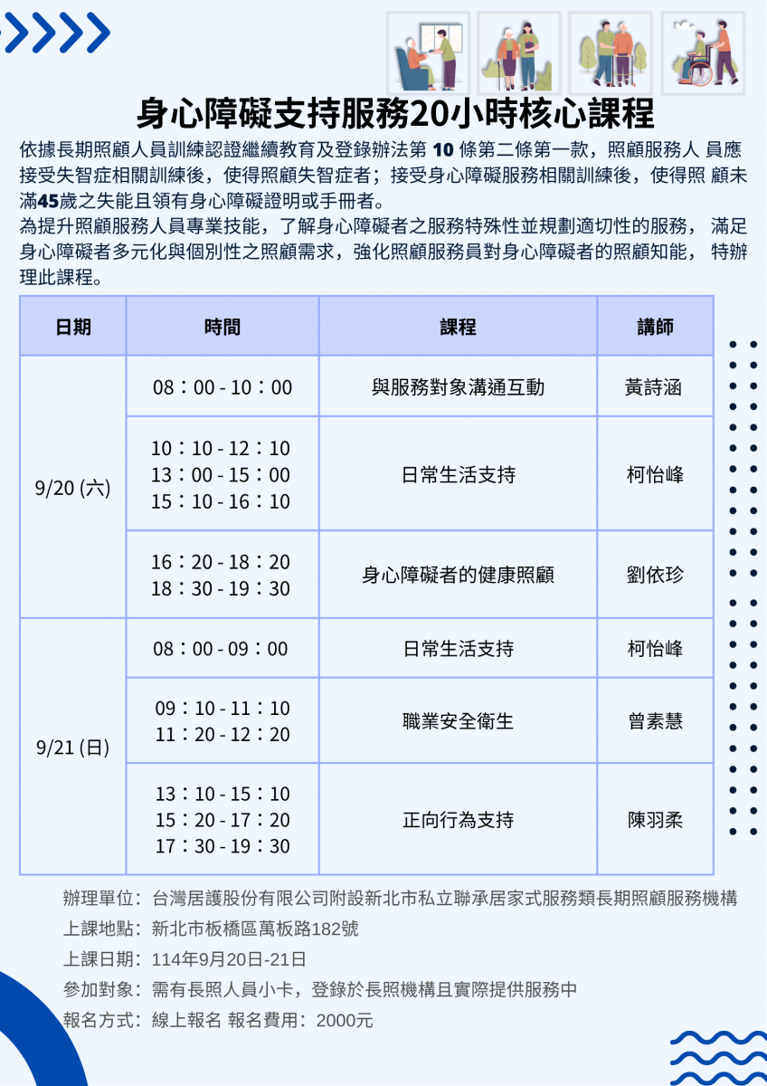 114年身心障礙支持服務20小時核心課程