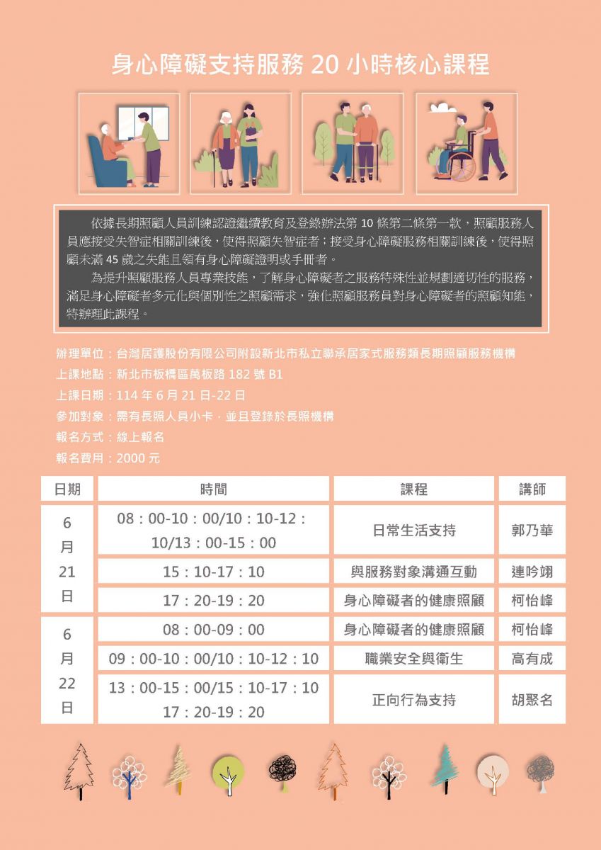 ◇◆◇9月份身心障礙支持服務20小時課程報名表連結◆◇◆